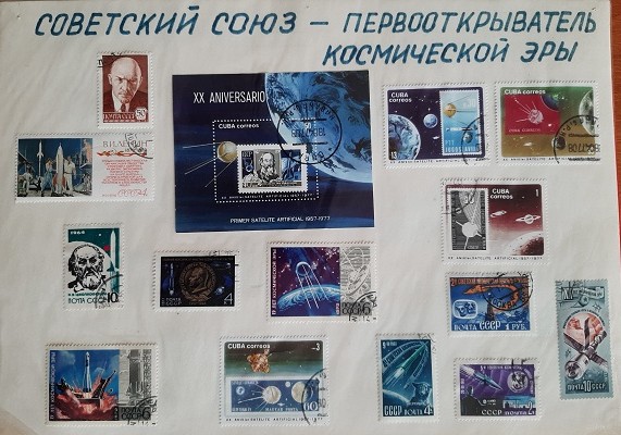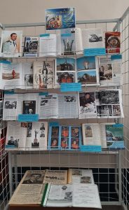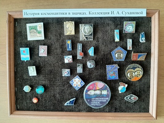 Книжную выставку дополняют тематические подборки по истории воздухоплавания, истории космонавтики на почтовых марках и открытках, коллекция значков космической тематики, информация о собаках, побывавших в космосе.
