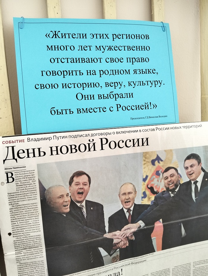 Перед этой церемонией в регионах прошли референдумы, на которых, по официальным данным, подавляющее большинство проголосовало за присоединение к России.