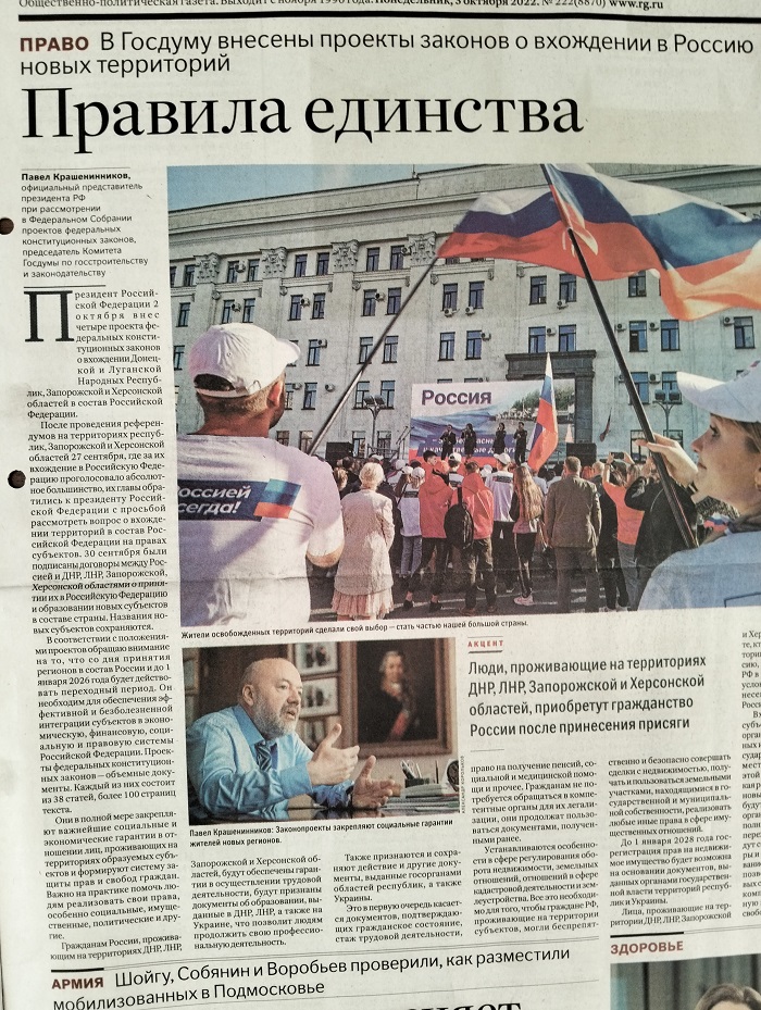 Большинство стран отказались признать референдумы и их результаты, квалифицировав действия России как нарушение международного права. Все эти события, произошедшие в конце сентября 2022 года, стали важным этапом в истории современного конфликта между Россией и Украиной и продолжают оказывать влияние на политическую обстановку в регионах. Но, «Мы стали сильнее, потому что мы вместе!», - Владимир Путин.