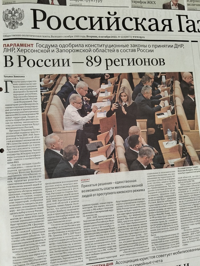 Именно 30 сентября 2022 года в Кремле прошла торжественная церемония, на которой президент России Владимир Путин подписал договоры о присоединении Донецкой и Луганской народных республик (ДНР и ЛНР), а также Запорожской и Херсонской областей к России. Согласно документам, регионы стали считаться частью Российской Федерации. ДНР и ЛНР сохраняют статус республик, в которых русский язык считается государственным - это закреплено в конституциях республик.