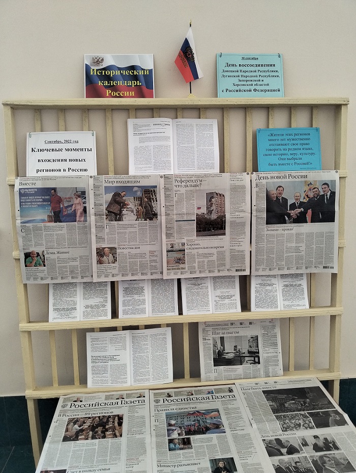 Познакомиться с экспозицией «Воссоединение новых территорий с Россией: ключевые моменты» можно с 29 сентября по 1 октября 2025 года