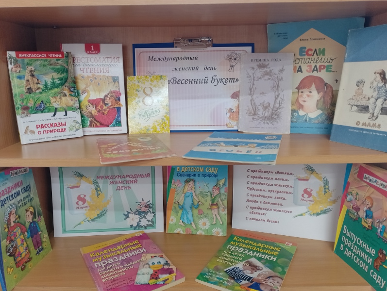 На абонементе библиотеки ШГПУ открыта книжная выставка «Весенний книжный букет» В экспозиции выставки представлены сборники душевных и светлых стихов для детей, которые легко можно выучить наизусть. Здесь же читатели найдут сборники рассказов, главной темой которых являются взаимоотношения родителей и детей. Рассказы согреты добротой, мягким юмором, душевной чистотой. Также на выставке вы найдете музыкальные занятия, утренники в детском саду, которые помогут весело провести праздник.
