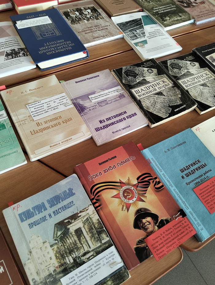 В читальном зале организована книжная выставка «Родной город в годы Великой Отечественной войны». Статьи, воспоминания, документы отражают жизнь Шадринска военных лет во всех возможных аспектах. Биографические справочники, Книги Памяти Курганской – о зауральцах, сражавшихся и погибших при защите Отечества в борьбе с немецким фашизмом.