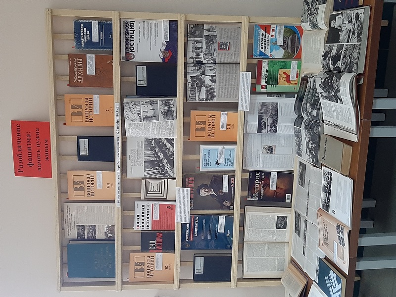 Современное искажение истории Второй мировой войны и оправдание германского нацизма недопустимо. В связи с этим представляется целесообразным обратиться к истории этого процесса и его итогам. Этому уникальному событию в истории посвящена книжная выставка «Разоблачение фашизма: память нужна живым». На выставке представлены материалы о событиях прошлого, но и ныне актуальных. Очерки рассказывают о суде над фашизмом, раскрывают кровавые преступления, разрушения городов и сел, угон в рабство миллионов людей.