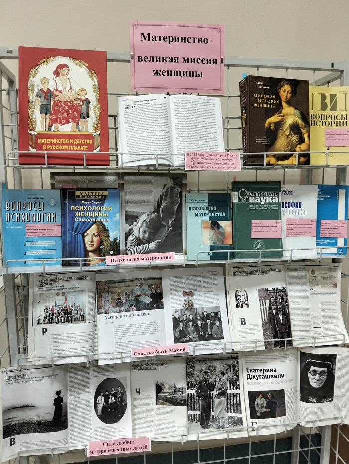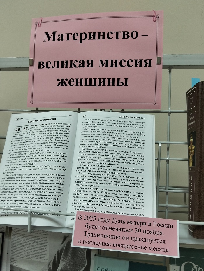 Книжная выставка «День матери» ждет своих читателей с 24 ноября по 8 декабря 2025 года в читальном зале библиотеки ШГПУ