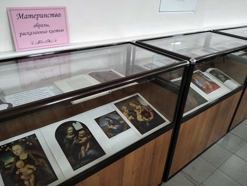 Экспозиция «Материнство : образы, написанные кистью» подготовлена в читальном зале библиотеки ШГПУ