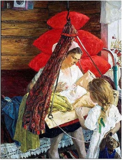 Картины, изображающие мать с младенцем в люльке или колыбели, часто передают атмосферу уюта, нежности и заботы. Художники используют такие сцены, чтобы подчеркнуть не только физическую, но и эмоциональную связь между матерью и ребенком. Эти произведения искусства могут быть как религиозного, так и светского характера. Вот несколько известных картин: