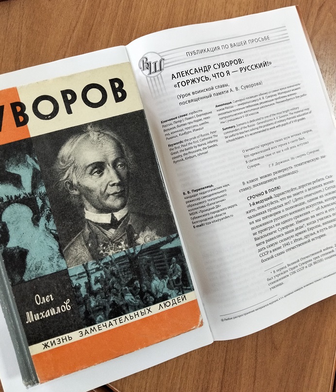 • Перепелица, В. В. Александр Суворов: "Горжусь, что я - русский!" : (урок воинской славы, посвященный памяти А. В. Суворова) / В. В. Перепелица. - Текст : непосредственный // Воспитание школьников. - 2016. - № 4. - С. 71-78.