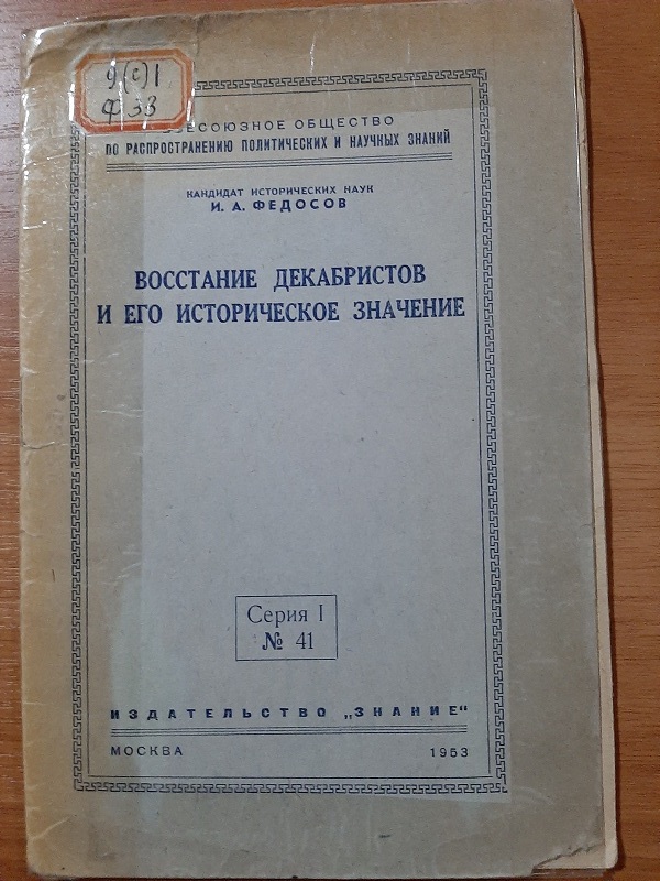 • Федосов, И. А. Восстание декабристов и его историческое значение / И. А. Федосов. – Москва : Знание, 1953. – 24 с. – Текст : непосредственный.