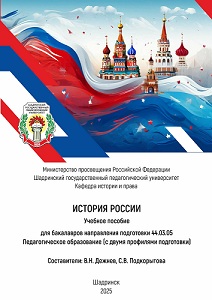 История России : учеб. пособие для бакалавров направления подгот. 44.03.05 Пед. образование (с двумя профилями подгот.) / Шадр. гос. пед. ун-т ; сост.: В. Н. Дежнев, С. В. Подкорытова. — Шадринск : ШГПУ, 2025. — 294 с. — Загл. с титул. экрана. — Электрон. версия печ. публикации. — Доступ из ЭБ ШГПУ (БД Труды преподавателей), для зарегистрир. пользователей. — Текст : электронный.