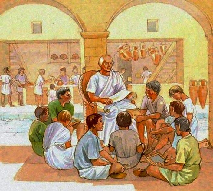 В глубокой древности, когда еще не было разделения труда, все члены общины или племени — взрослые и дети — участвовали на равных в добывании пищи, что составляло главный смысл существования в те далекие времена. Передача накопленного предшествующими поколениями опыта детям в дородовой общине была «вплетена» в трудовую деятельность. Дети, с ранних лет включаясь в нее, усваивали знания о способах деятельности (охота, собирательство и другие) и овладевали различными умениями и навыками. И лишь по мере совершенствования орудий труда, что позволяло добывать пищи больше, появилась возможность не привлекать к этому больных и старых членов общины. Им вменялось в обязанность быть хранителями огня и присматривать за детьми.