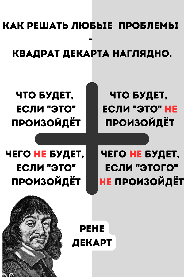 Рене Декарт стал автором такого интересного метода принятия решений, который получил название «квадрат Декарта».